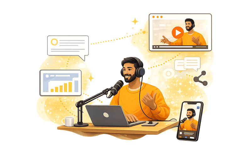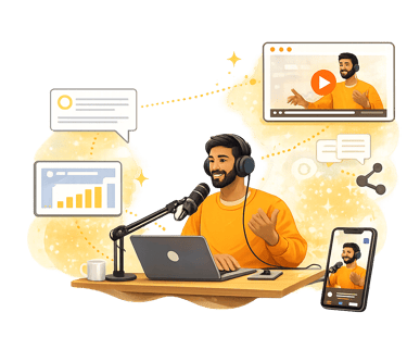 CreatorCast is designed for founders, creators, and leaders who want premium storytelling and consistent visibility—without the chaos of managing editors, scripts, captions, and publishing.